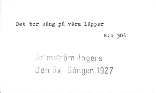 //// Det bor sång på våra läppar //// N:o 306 //// t a ms rörn-Ingers //// Jen Sv. Sången 1927 ////