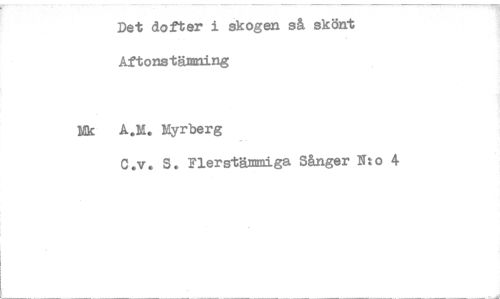 //// Det dofter i skogen så skönt Aftonstämning //// Nk A.M, Myrberg //// C.v. S. Flerstämmiga Sånger Nto 4 ////