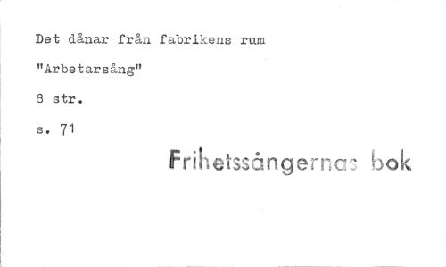 //// Det dånar från fabrikens rum "Arbetarsång" //// 8 str. //// s. 71 //// Fr t //// 1.‘ra c //// ok ////
