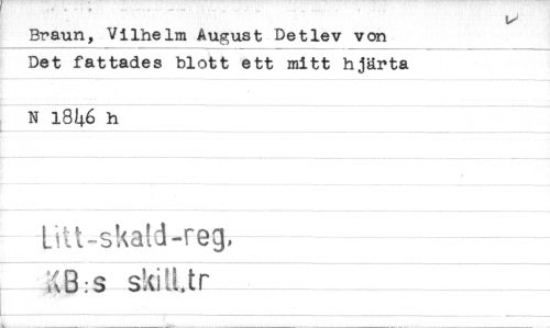 //// Braun, Vilhelm August Detlev von //// Det fattades blott ett mitt hjärta N 1846 h //// -Le-skald-regi //// tr ////