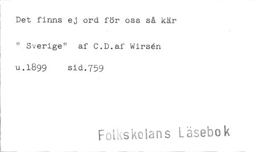 //// Det finns ej ord för oss så kär //// " Sverige" af C.D.af Wirs61 //// u.1899 sid.759 //// o ans Läsebok ////