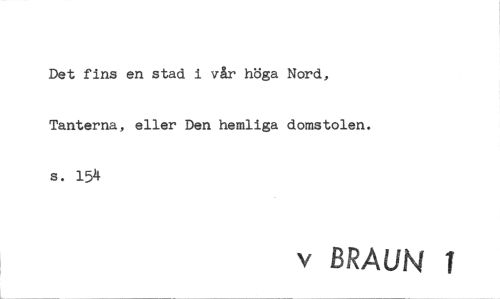 //// Det fins en stad i vår höga Nord, Tanterna, eller Den hemliga domstolen. s. 154 //// v BRAUN 1 ////