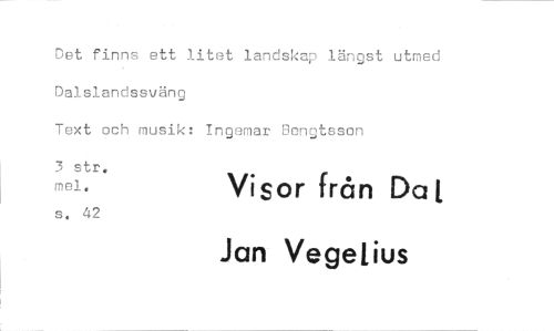 //// Det finns ett litet landskap längst utmed Dalslandssväng //// Text och musik: Ingemar Bengtsson //// 3 str. mel. Visor från Da t //// s, 42 //// Jan Vegelius ////