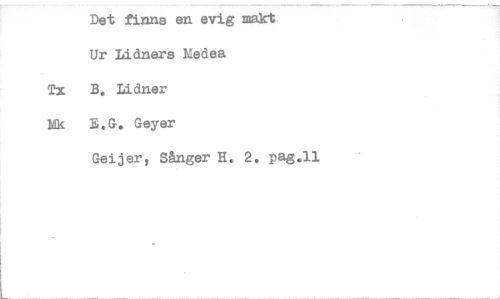 //// Det finns en evig makt. //// Ur Lidners Medea //// Pm B. Lidner //// Mk B.G. Geyer //// Geijer, Sånger H. 2. pag.11 ////