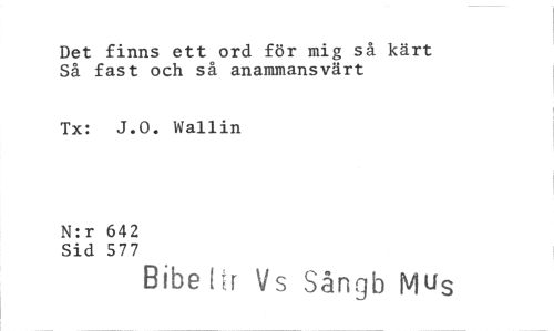 //// Det finns ett ord för mig så kärt Så fast och så anammansvärt //// Tx: J.O. Wallin //// N:r 642 Sid 577 //// [Mehr Vs Sångb Mus ////