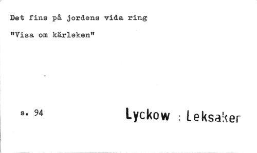 //// Det fins på jordens vida ring "Visa om kärleken" //// s. 94 Lychow : Leksaker ////