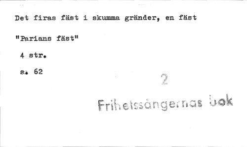 //// Det firas fäst i skumma gränder, en fäst //// "Parians fäst" 4 str. //// 62 //// Fribe sångei enat'uok ////