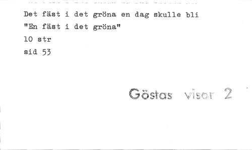 //// Det fäst i det gröna en dag skulle bli "En fäst i det gröna" //// 10 str sid 53 //// Göstas vls.et ////