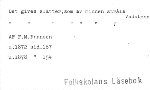 //// Det gives slätter,som av minnen stråla //// Vadstena //// It flfl IT tf It //// AF F.M.Fransen u.1872 sid.167 //// u.1878 154 //// FYskoIans Läsebok ////