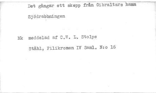 //// Det gångar ett åkepp från Gibraltars hamn Sjödrabbningen //// Mk meddelad af C.W. Ii. Stolpe //// Ståhl, Filikromen IV Saml. N:o 16 //// r- ////