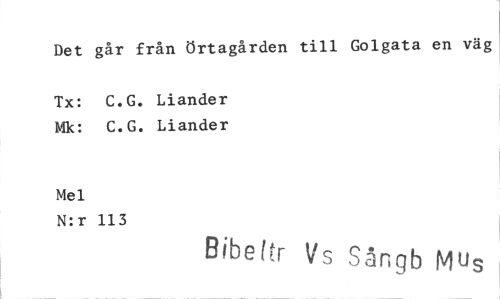 //// Det går från örtagården till Golgata en väg //// Tx: C.G. Liander Mk: C.G. Liander //// Mel //// N:r 113 //// Bibe(tr Vs Sångb Mus ////