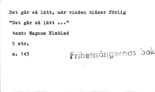 //// Det går så lätt, när vinden blåser förlig //// "Det går så lätt ..." text: Magnus Elmblad 5 str. //// s. 143 556IngerneS 3(3' ////