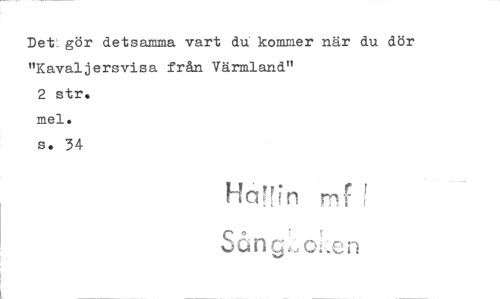 //// Det_gör detsamma vart du kommer när du dör //// "Kavaljersvisa från Värmland" //// 2 str. //// mel. //// so 34 //// Ha! • ////