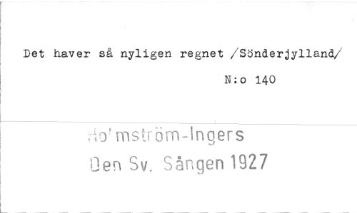 //// Det haver så nyligen regnet /Sönderjylland //// /N:o 140 //// mström-Ingers //// Oen Sv. Sången 1927 ////