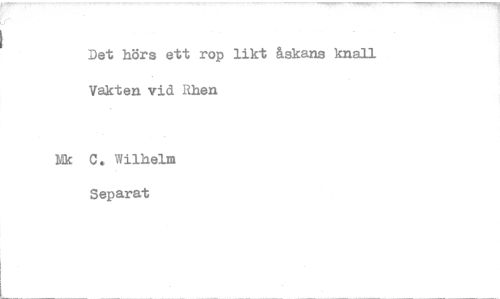 //// Det hörs ett rop likt åskans knall Vakten vid Fiken //// Nk C. Wilhelm Separat ////
