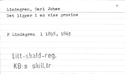 //// Lindegren, Carl Johan //// Det ligger i en viss provins //// F Lindegren 1 1858, 1863 //// lift.skald-reg, //// KB:s skilLtr ////