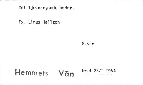 //// Det ljusnar,omdu beder. Tx. Linus Hellzon //// 8.str //// Hemmets Vän Nr.4 23:1 1964 ////