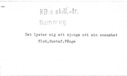 //// KB:s skill.-tr. //// Namnreg //// Det lyster mig att sjunga uti min ensamhet Flod,Gustaf.Fånge ////