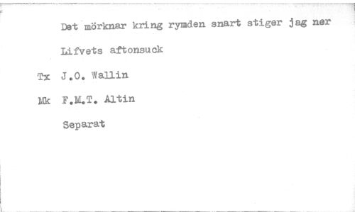 //// Det mörknar kring rymden snart stiger jag ner //// Lifvets aftonsuck //// Tx J.O. //// Ek F.M.T. Altin //// Separat ////