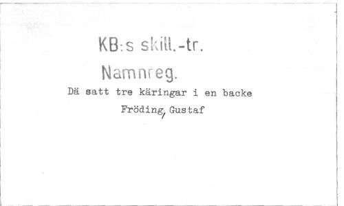 //// KB:s skilt.-tr. //// Namnveg. //// Dä satt tre käringar i en backe Fröding/ Gustaf ////