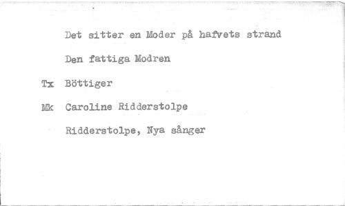 //// Det sitter en Moder på hafvets strand //// Den fattiga Modren //// Tx Böttiger //// Nk Caroline Ridderstolpe //// Ridderstolpe, Nya sånger ////