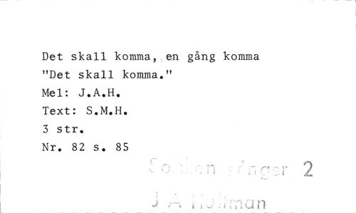 //// Det skall komma, en gång komma //// "Det skall komma." //// Mel: J.A.H. //// Text: S.M.H. //// 3 str. //// Nr. 82 s. 85 //// j i ////
