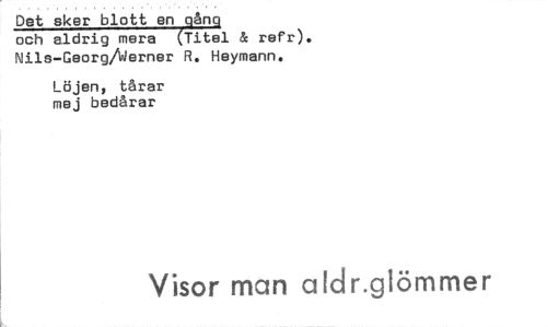 //// Det sker blott en (lång //// och aldrig mera (Titel & refr). Nils-Georg/Werner R. Heymann. //// Löjen, tårar mej bedårar //// Visor man alcingiömmer ////