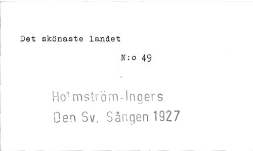 //// Det skönaste landet //// N:o 49 //// mströrn-ingers //// Den Sv. Sången 1927 ////