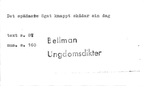 //// Det spädaste ögat knäppt skådar. sin dag //// text B. 87 muser 84 1160 etinv,-,In //// Ungdomsdikter ////