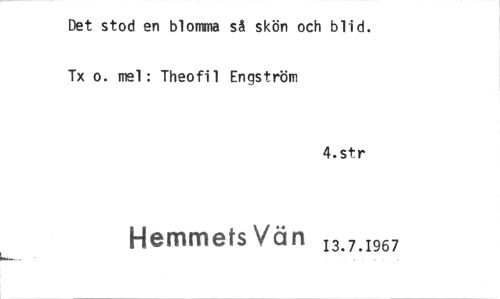 //// Det stod en blomma så skön och blid. //// Tx o. mel: Theofil Engström //// 4.str //// Hemmets Vän 13.7.1967 ////