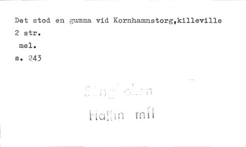 //// Det stod en gumma vid Kornhamnstorg,killeville 2 str. //// mel. s. 243 //// hu; in mil ////