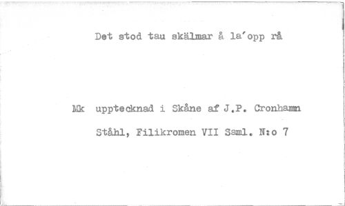 //// Det stod tau skälmar å la'opp rå //// It k upptecknad i Skåne af J.P. Cronhamn Ståtel, Filikromen VII Saml. N:o 7 ////