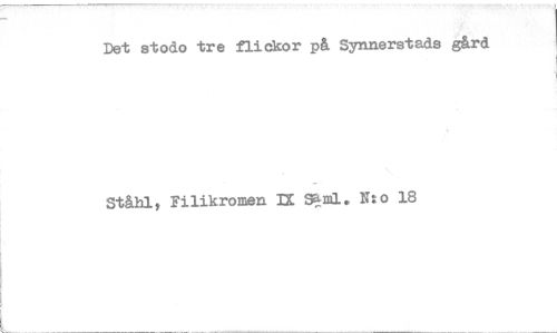 //// Det stodo tre flickor på Synnerstads gård //// Ståhl, Filikromen IX Tf,m1. N:o 18 ////