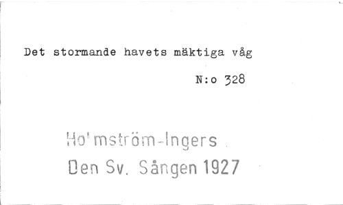 //// Det stormande havets mäktiga våg //// N:o 328 //// Ho' mströrn-Ingers //// Lien Sv. Sången 1927 ////
