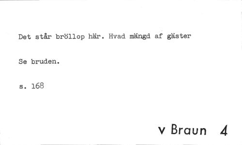 //// Det står bröllop här. Hvad mängd af gäster Se bruden. //// s. 168 //// v Braun 4 ////