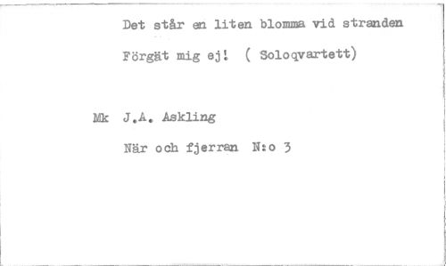 //// Det står en liten blomma vid stranden Förgät mig ej1 ( Soloqvartett) //// Båk J.A. Askling //// När och fjerran N:o 3 ////