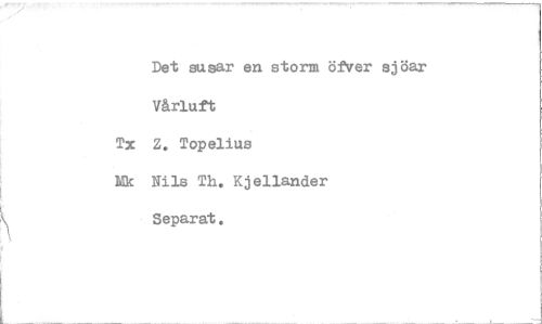 //// Det susar en storm öfVer sjöar //// Vårluft //// Tx Z. Topelius //// Mk Nils Th. Kjellander //// Separat. ////