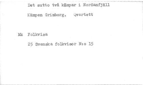 //// Det sutto två kämpar i Nordanfjäll Kämpen Grimborg. Qvartett //// Ek Folkvisa //// 25 Svenska folkvisor N:o 15 ////
