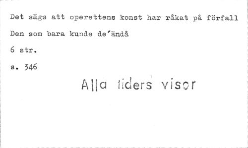 //// Det sägs att operettens konst har råkat på förfall Den som bara kunde de'ändå //// 6 str. s. 346 //// Alla iiciers viscr ////