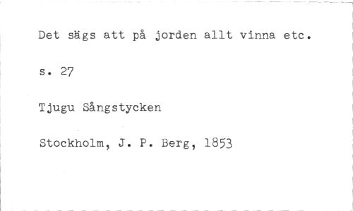 //// Det sägs att på jorden allt vinna etc. s. 27 //// Tjugu Sångstycken //// Stockholm, J. P. Berg, 1853 ////