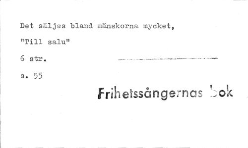 //// Det säljes bland mänskorna mycket, "Till salu" //// o str. s. 55 //// Friheissångernas ';ok ////