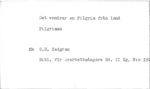 //// Det vandrar en Pilgrim från land Pilgrimen //// Mk G.H. Hedgren //// Bibl. för Qvartettsångare Bd. II Hg. Mo 19 ////