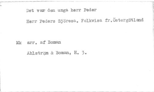 //// Det var den unga herr Peder //// Herr Peders Sjöresa. Folkvisa fr.Östergötland //// Ek arr. af Boman //// Åhlström & Boman, H. 3. ////