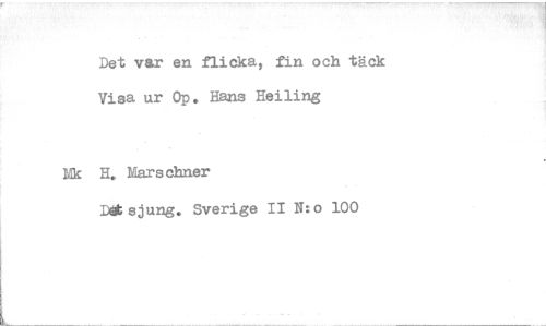 //// Det var en flicka, fin och täck Visa ur Op. Hans Heiling //// Ek H. Mars chner //// Dolitsjung. Sverige II N:o 100 ////