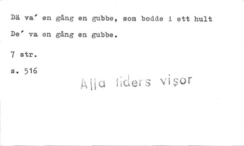 //// Dä va' en gång en gubbe, som bodde i ett hult De' va en gång en gubbe. //// 7 str. //// s. 516 liders visor ////