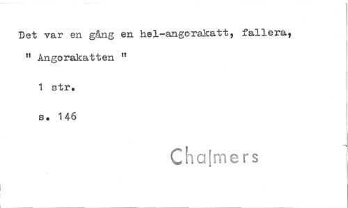 //// Det var en gång en hel-angorakatt, fallera, " Angorakatten " //// 1 str. s. 146 //// Chalmers ////
