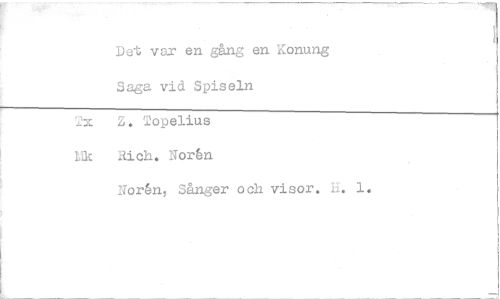 //// Det var en gång en Konung //// Saga vid Spiseln 1x Z. Topelius //// kik Rich. Norén //// Norån, Sånger och visor. L. 1. ////