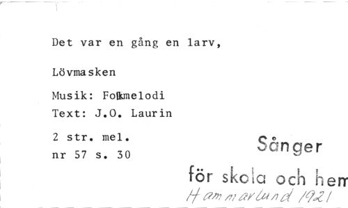 //// Det var en gång en larv, Lövmasken //// Musik: Folkmelodi Text: J.O. Laurin //// 2 str. mel. nr 57 s. 30 Sånger //// för skola och herr //// ff am/t7Qf4d /9...J //// /