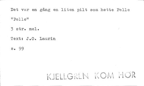 //// Det var en gång en liten pilt som hette Pelle //// "Pelle" //// 3 str. mel. //// Text: 3.0. Laurin //// s. 99 //// KJELLGi,LN //// ki't //// k \ R ////