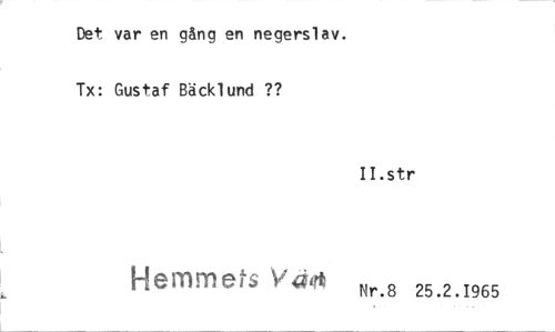 //// Det var en gång en negerslav. Tx: Gustaf Bäcklund ?? //// II.str //// HenTlet:›Y<iat Nr.8 25.2.1965 ////